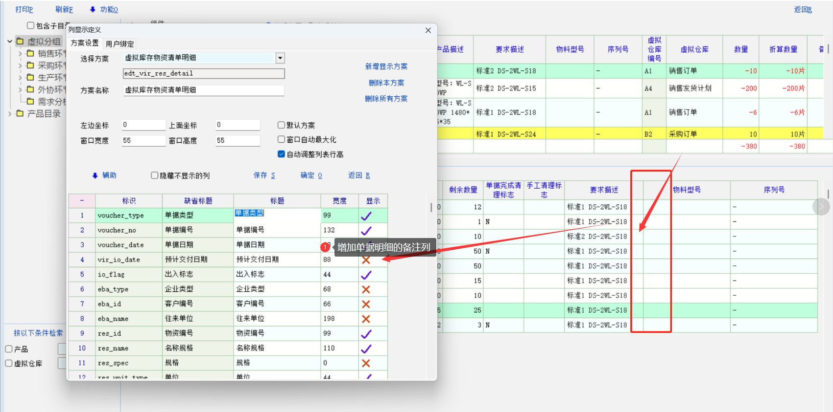 推荐_建议 虚拟库存,单据明细的 显示定制里 增加上单据的备注_产供销