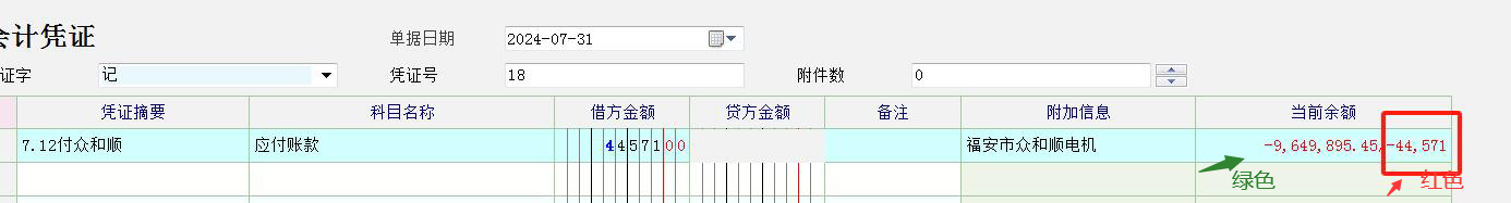 做凭证时,可以显示当前余额,这非常方便,如果当前单位的余额和科目总的余额用不同颜色的字体分开显示会不会更好点呢?