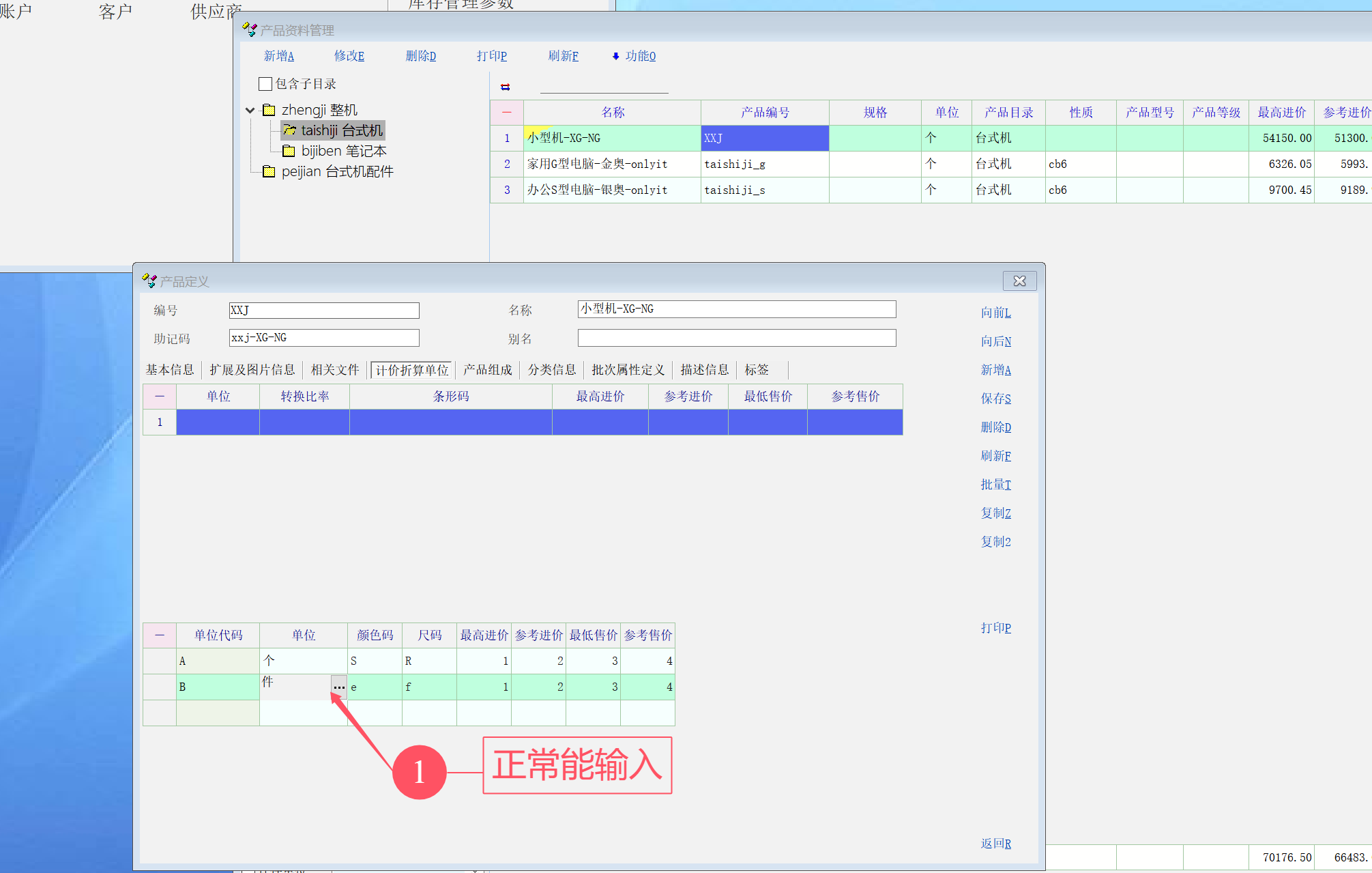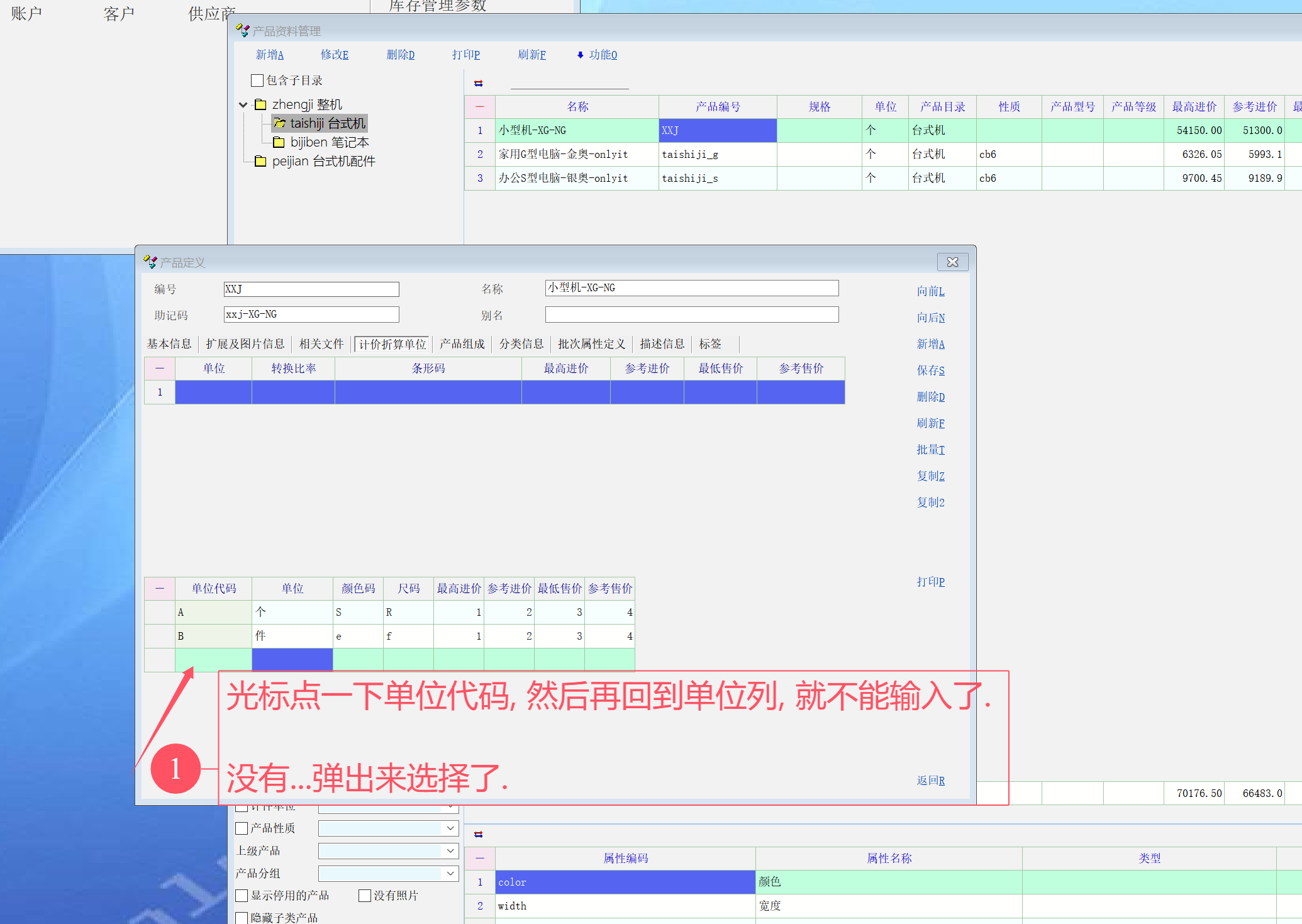 3. 重现发现, 如果光标一旦点了单位代码列, 就会导致不能再输入的现象, 详细看图