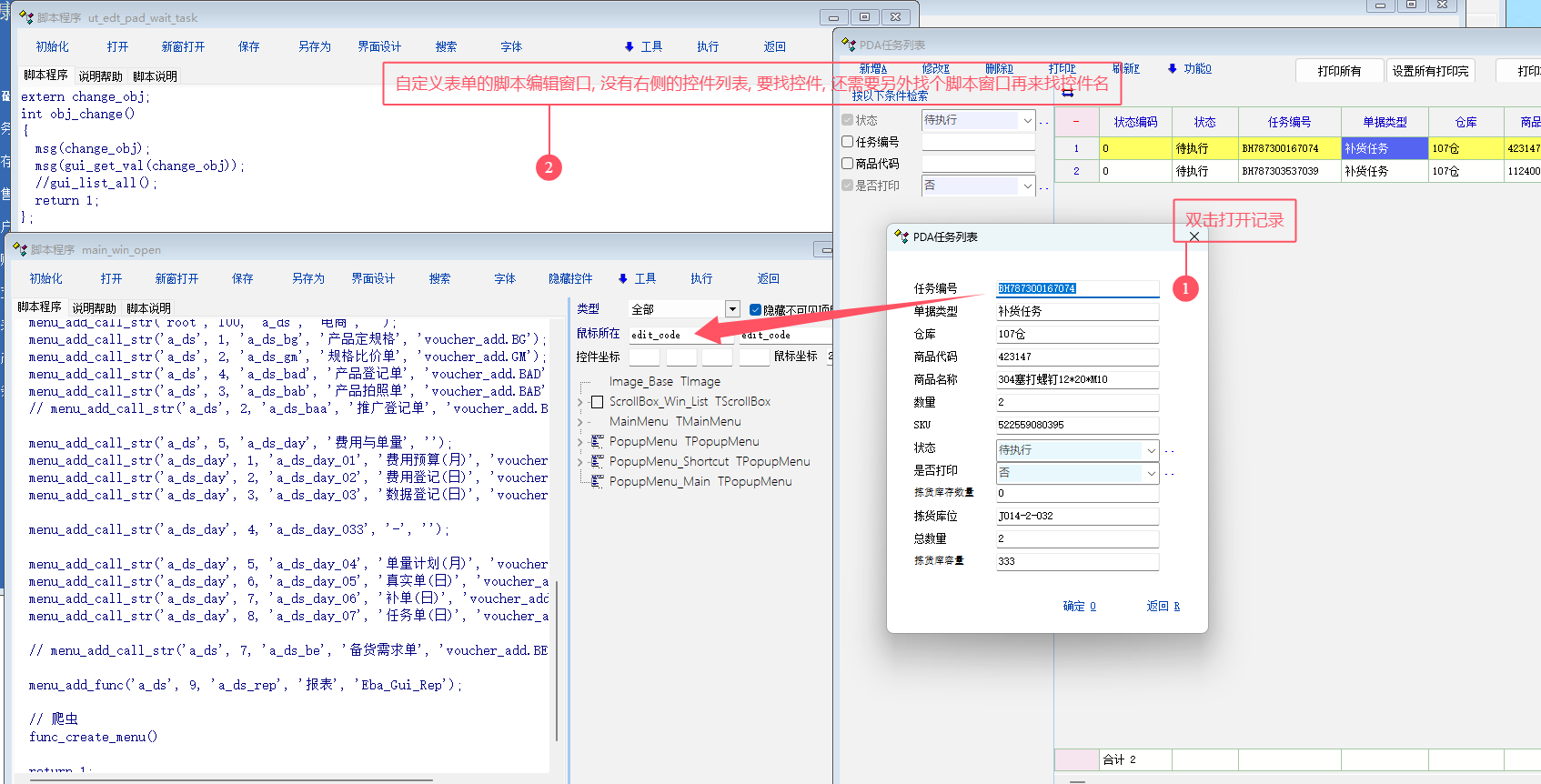 还需要单独另外开一个脚本窗口, 再查找控件名.