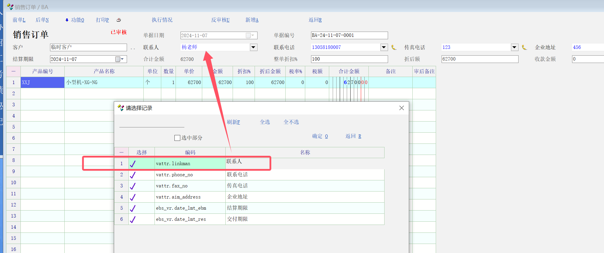 所以将联系人定义为审后允许编辑的字段,  但是没有效果, 改了之后,前单, 后单, 再次打开, 又变回改之前的了.