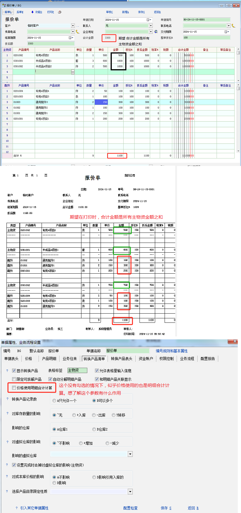 求助_报价单总金额计算不正确,产品是带有主从结构的非标类工业产品_产供销