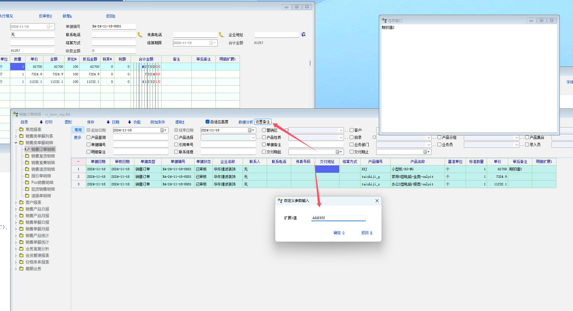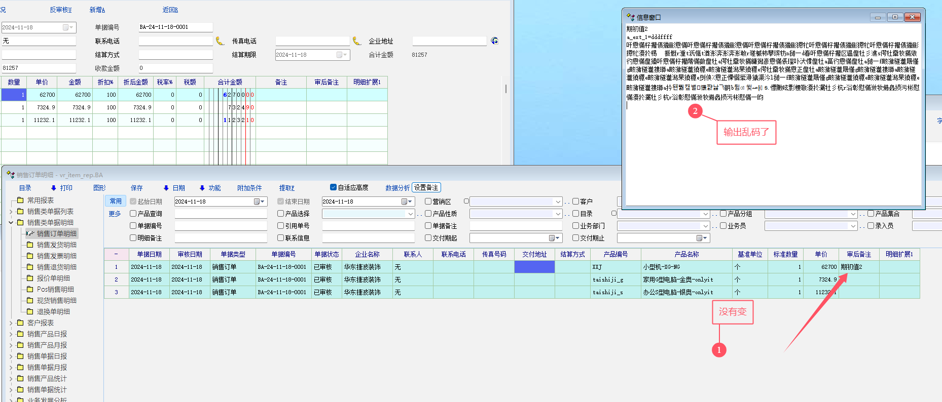 应用场景: 客户做了许多定制, 弹窗之后,填写内容, 再写入到表格中. 以前版本没有问题, 今天给客户升级到1106版本, 发现弹窗输入内容之后, 内容写不进表格里了. 具体在某个报表中的明细中, 点击添加的按钮 , 再输入内容, 就会重现问题了. extern change_row_id,change_obj,rep_id; int rep_change() { gui_create_button('Panel_Func', 'vr_item_rep_t1', 800, 2, 60, 22, '设置备注', 'call_prog.adm.grid.vr_item_rep.BA.set_ext_1'); return 1; }; // 设置值 int set_ext_1() { dbg_clear(); string mg; mg = "MG"; grid_set_v(mg, 'attr_checked_item_note', 1, '期初值2'); inp_clear(); dbg(grid_get_v(mg, 'attr_checked_item_note', 1)); inp_def_string('a_ext_1', '扩展1值'); // inp_para 中 访问设置表格会失败 if (inp_para() == 1) { string a_ext_1; a_ext_1 = inp_get_val('a_ext_1'); dbg('a_ext_1=' + a_ext_1); // 这里会输出乱码了 dbg(grid_get_v(mg, 'attr_checked_item_note', 1)); // 这里设置不了值 grid_set_v(mg, 'attr_checked_item_note', 1, a_ext_1); } return 1; } int before_load_data() { return 1; }; int load_ext() { return 1; }; int change_row_id; int show_row_ext() { //change_row_id 表示当前行 return 1; }; int load_over() { string mg; mg = "MG"; grid_set_v(mg, 'attr_checked_item_note', 1, '期初值'); return 1; }; int dbl_click() { return 1; }; int obj_change() { return 1; }; int main() { return 1; }; |