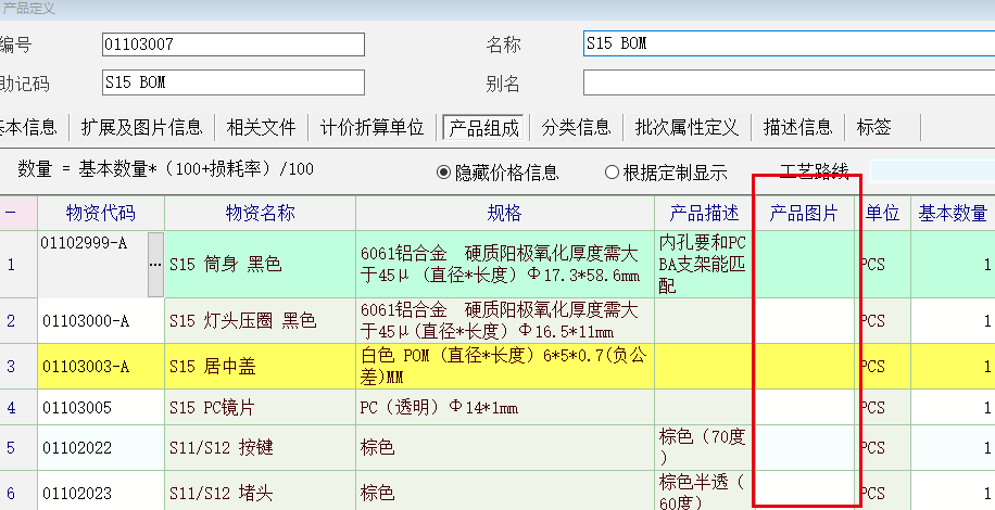 求助_怎么在产品定义产品BOM组成中引用物料产品的图片?_产供销