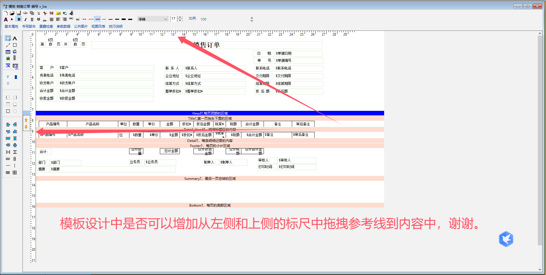 原创_模板设计中是否可以增加从左侧和上侧的标尺中拖拽参考线到内容中,谢谢。_产供销