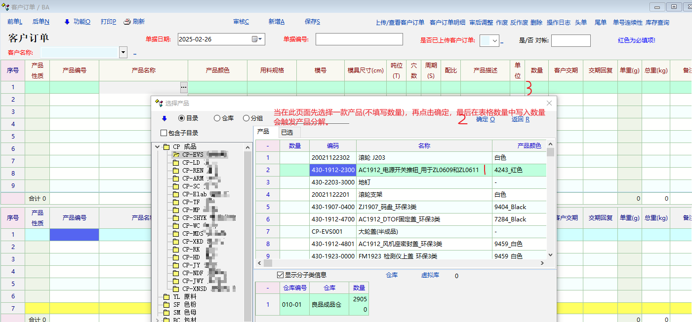 不建议在客户订单进行产品分解,这涉及到2到3部门工作职责