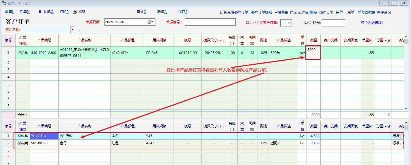 求助_在销售订单的选择产品页面直接录入数量不触发产品分解_产供销