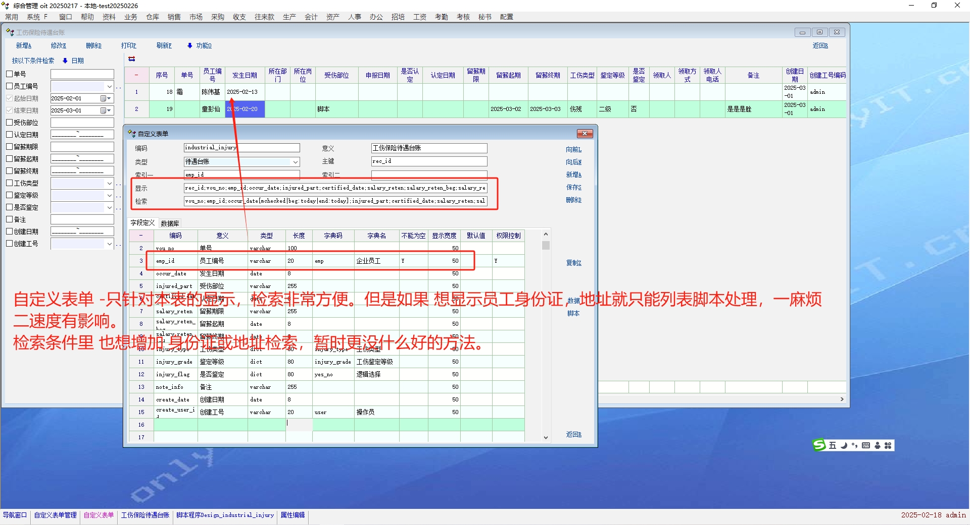 是不是可以弄成报表了.... 或者孟老师在自定义表单中, 增加关联表. 比如主表是 ut_xxx1, 中间用到员工表了, 可以增加关联表 app_emp, 然后是left join app_emp b, 检索条件 可以增加 b.dept_post, 最后生成的查询条件为: where b.dept_post='xxx', 这样就能限定了 |