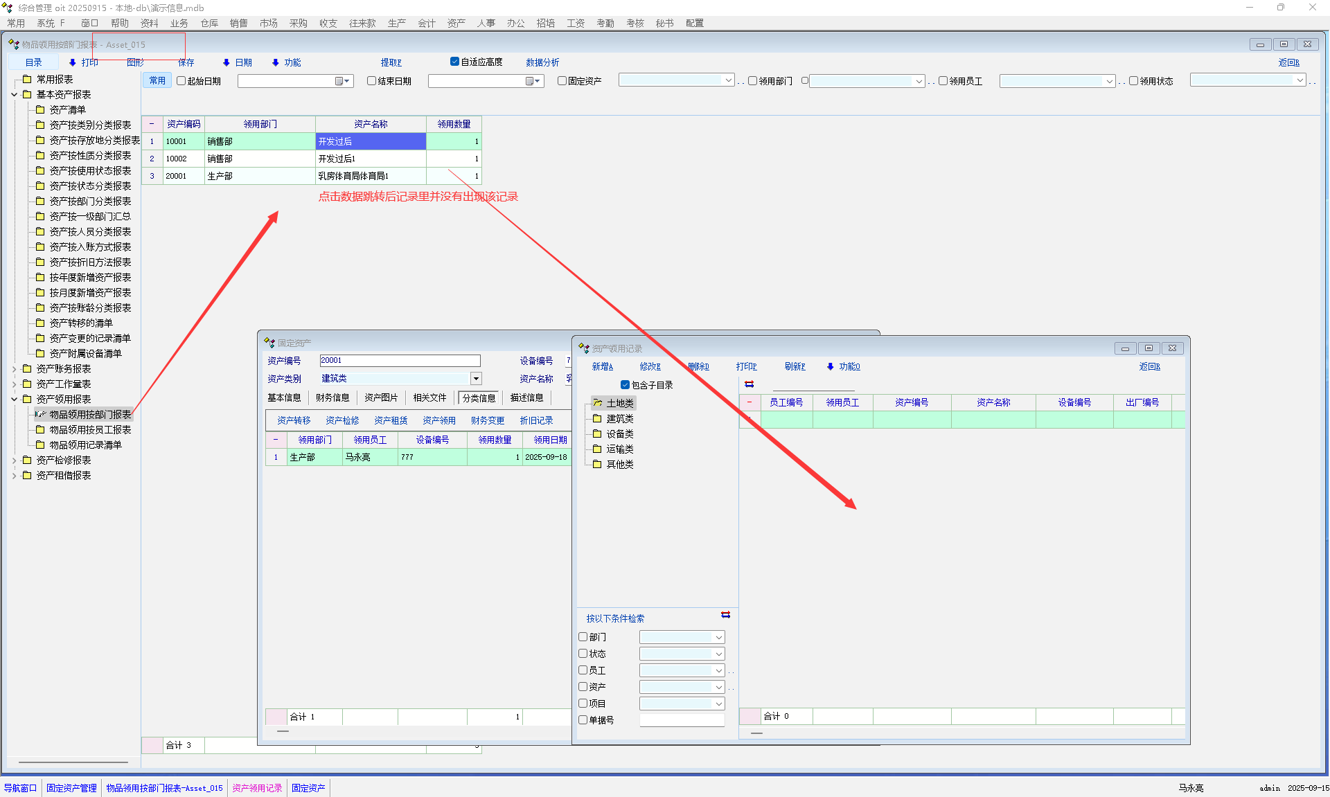 3:物品领用按员工表报双击明细数据跳转异常  asset_016