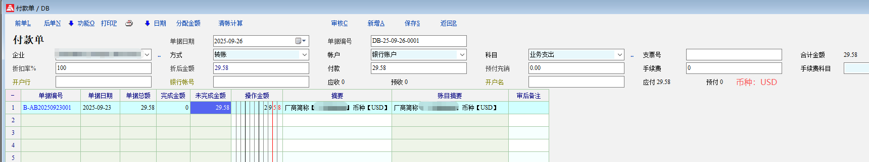 老师,目前在越南很多供应商不同采购订单会有不同结算币种,所以需要在往来款单据表头显示币种,明细行也能显示币种,这样做付款单和应付核销的时候,选择不同结算币种,就提取对应币种的应付明细出来