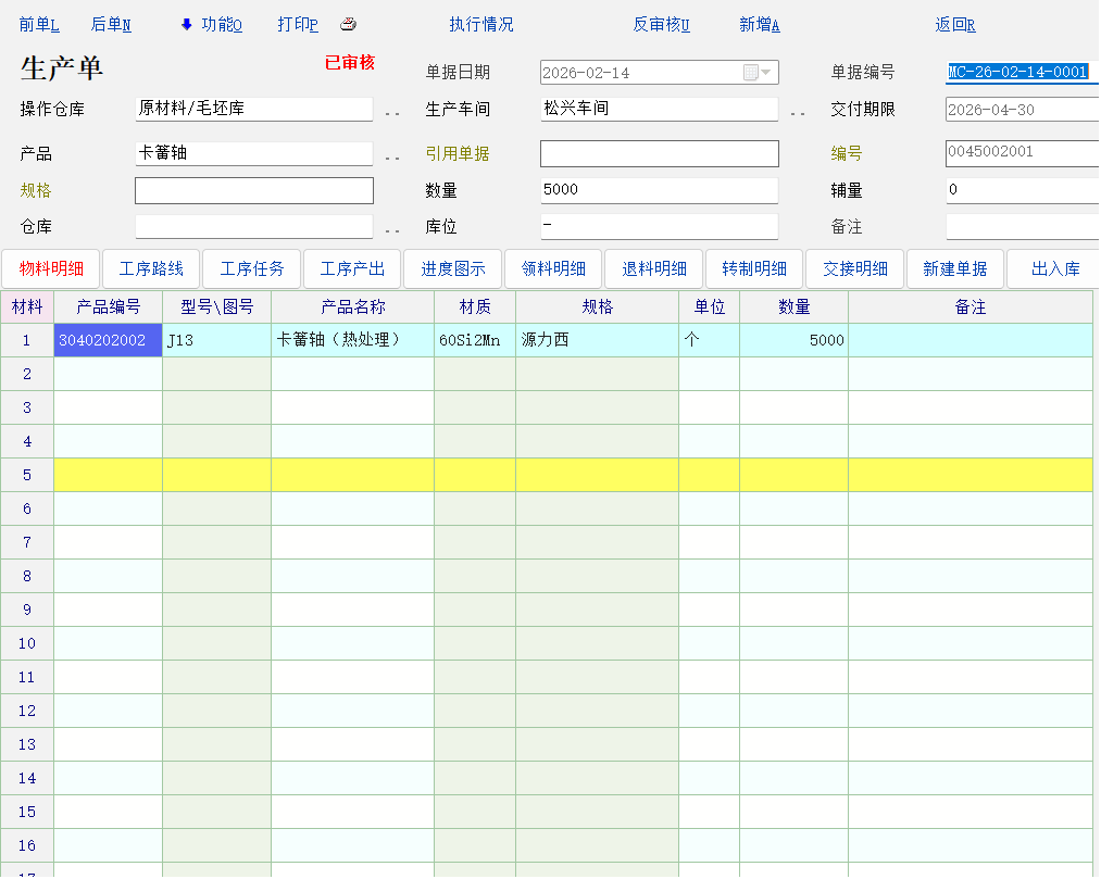 就是生产单的界面能否像配料单里的一样,上面主物资列表,下面是材料列表