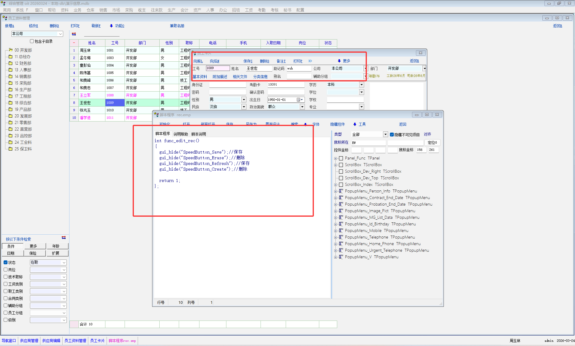 在下列脚本下,客户和人事无法隐藏保存和删除
