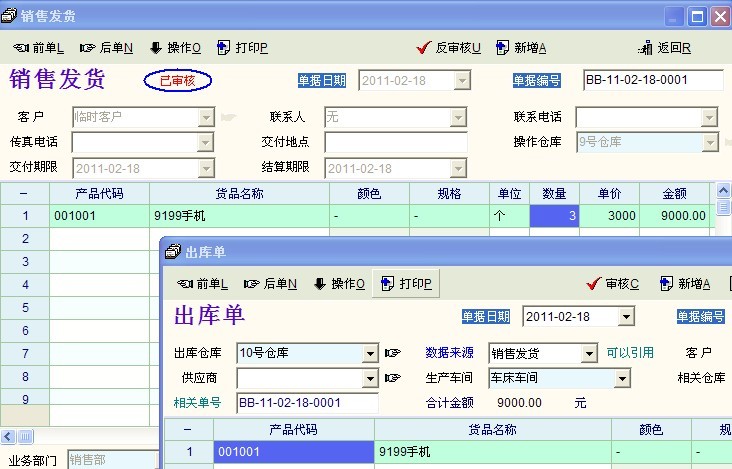 1、销售发货时如果发货是9号仓库 出库单时发现9号仓库没货了。就从10号仓库出库的。销售单据发货明细里,就查询不到