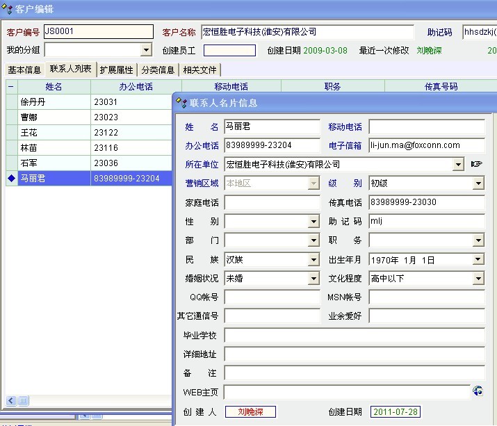 我把截图在附件里面了 客户资料里面的有一个联系人列表,打开后里面有个电子信箱