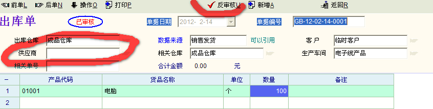 如题, 刚接触这套软件, 操作时在“审核”前“供应商”栏有内容,审核后即变为空白,打印后亦是如此, 如附图。 请教位,问题出在哪里呢? 谢谢!! |