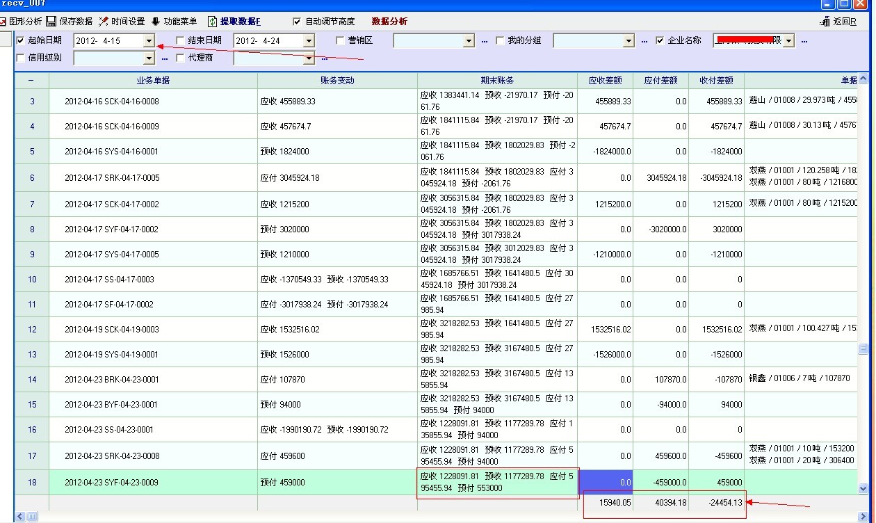 4、因为目前是三个公司按三个部门来算的,而同一个客户又即是我们的供应商又是销售方,所以会有应收,预收,应付,预付,目前只能通过这个通道来让差额一目了然,但是因为无法真正的取到期末真实的应收,预收,应付,预付的数据,只能通过变动数据来取值,目前还可以从期初一路下来,但是如果时间长了取阶段性数据就有问题了(见附件4、5) 附件5就是有问题的了(同时,可否开通按不同部门筛选的功能,谢谢,因为一个客户可能与几个公司都有业务往来,所以需要把钱按部门分开取值,谢谢) |