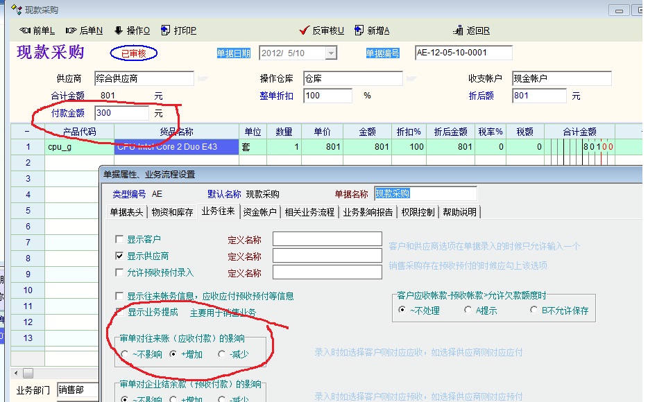 有时会遇到先进货而后付款,找不到地方记录,只好先记录在现款采货中,这样记录库存正常,但资金不正常。