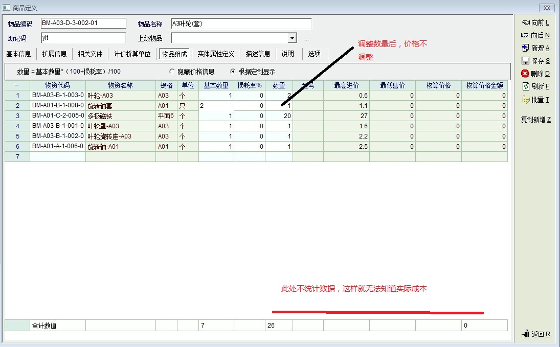 本人刚刚试用了,一个产品的组成,不自动统计成本,改了数量也不变单价。是我操作问题,还是软件问题!求解!