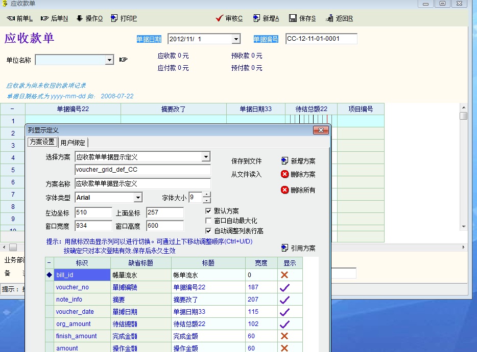 应收款单我这里可以显示定制的啊。