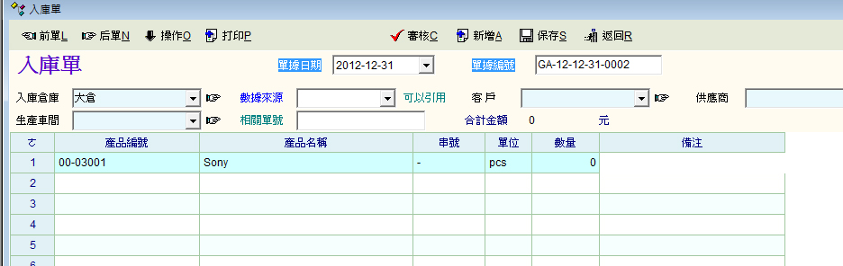 例如一件產品有庫存量=10, 那這件產品就包含了10個SN, 而這件產品出售時包含這件產品序號.