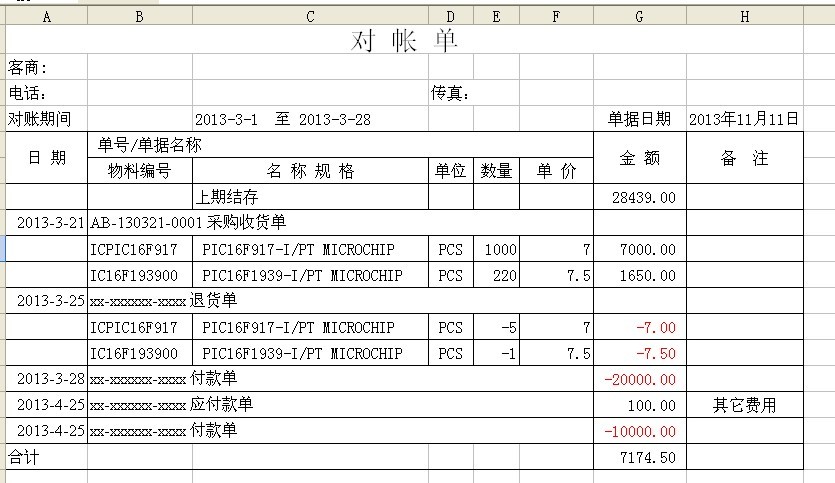 3.然后才列出当前对账期间的明细(不包含收款和付款)