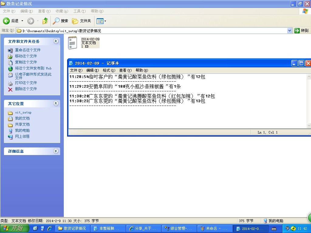 3,将文件以开单日期作为文件名记录非整箱要货客户的相关信息以便将来查找,也可以省去了开单据人员的手工另外记录的情况;
