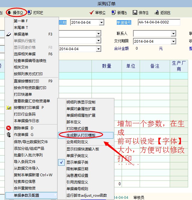主要原因,打印出来的订单,往往要传真,所以生成默认打印模板的字体,要是能在大几号,就好了,14号