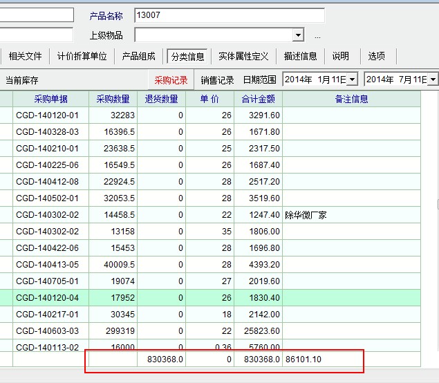 产品定义中采购、销售统计数量出错
