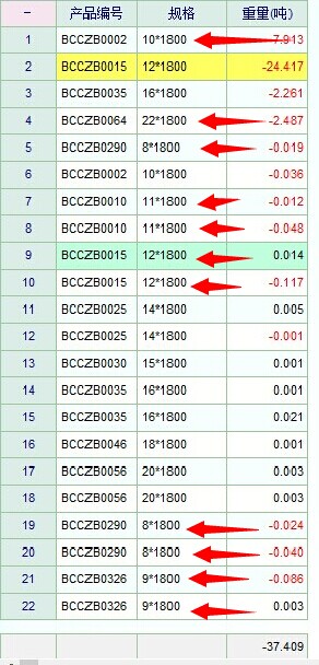 2、而在开单时选择-相同目录相同规格-时只有7个产品有库存状况(包括正负库存),请看开单时先择产品图