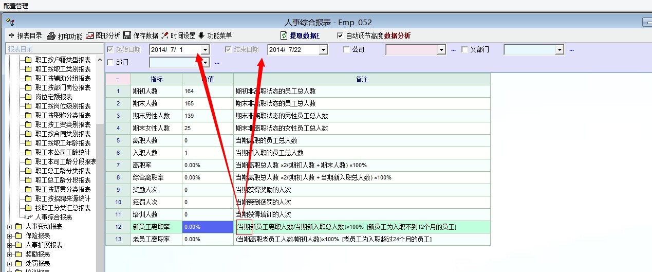 如题,从统计结果判断,“当期新员工离职人数”是统计的“司龄不足12个月的员工”,但没有考虑“当期”的时间区间限制。