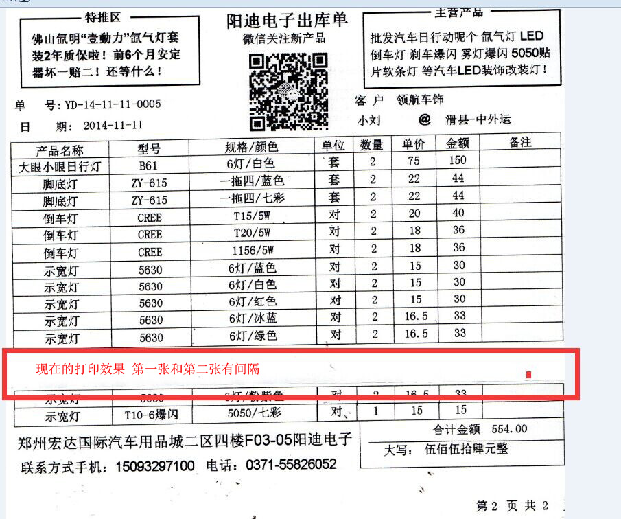 现在打印的效果为  (或者能不能用脚本实现 默认选择纸张为 24.CM 高为14.CM这个大小当超出这个纸张大小时自动使用24.CM 高为28.CM的大小的纸张 我们的出库单的内容不会超出2张纸大小)