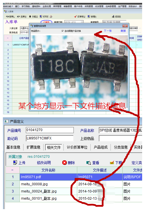 求助_请教老师 在单据中Ctrl+Q查看图片中如何显示该图片的相关描述信息_产供销