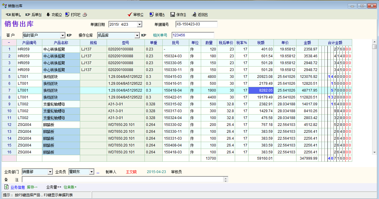 当物资分批次管理时,单据中就经常会出现一种物资对应多个批次的情况,下面以销售出库单据为例说明一下: