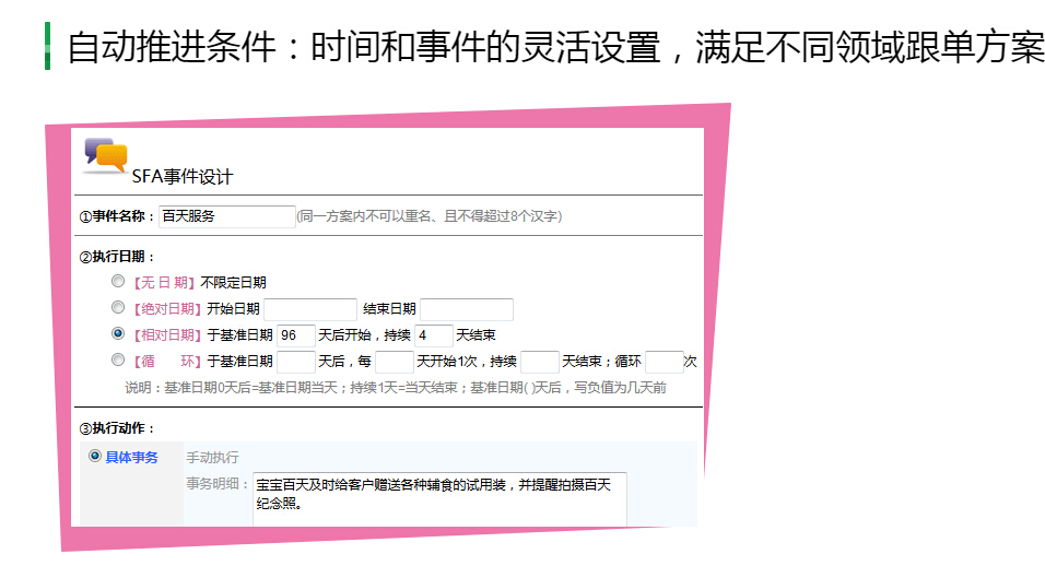 客户联系许多时候都是要求定期、持续的跟进的,客户管理中虽然也可以添加定期联系的重复提醒,但一个客户要设定一次,效率太低,功能也太简单,强烈希望能在客户接触计划制定中添加类似于常规任务的重复提醒!