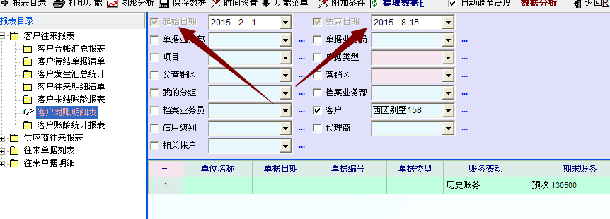 客户对账我们使用基本都是不限日期,只要去了勾就可以,不然要一个月一个月向前选 ,客户对账的日期选择能不能和销售报表一样选择
