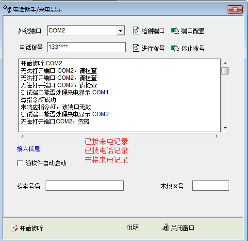 2、在电话助手界面添加通话记录列表,显示最近的已接电话、未接电话等记录、内容。
