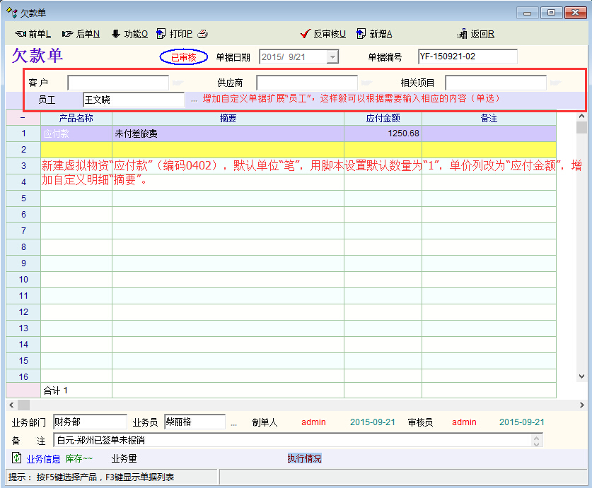 不是只有这种情况,自定义的话可能会更方便些。像现在“应付款单”的单位名称只能输入供应商,无法输入自定义的项目,明细也没有自定义来的自由。