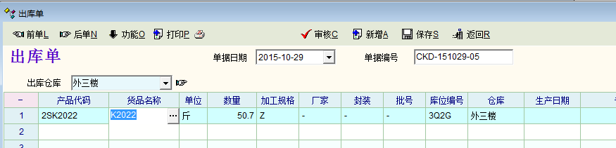 一来不太符合使用习惯,二来鼠标移动距离太大,还是没有鼠标右键方便。另外,忘记了另一个重点建议是直接将搜索框中的型号或光标所在行的型号的库存明细(图片2)直接传递到出库单(图片3)中,这样就非常方便了,同时也大大提高了效率。