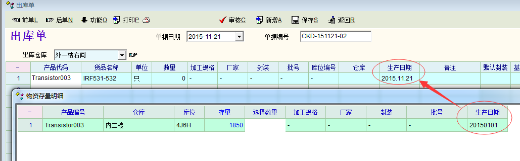 出库单的物资生产日期有错误,系统自动将出库物资的生产日期更改成当前日期(出库日期)了。