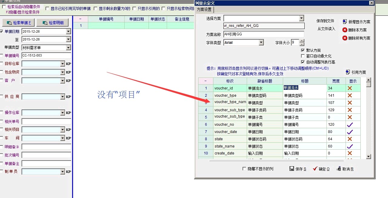现在引用的单据清单表头没有“项目” ,强列建议添加。