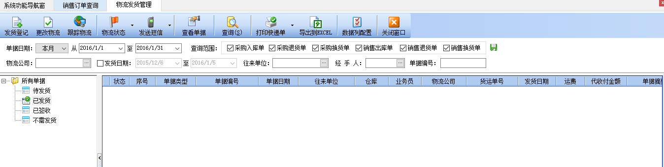 发货管理,签收,已发货,待发货.