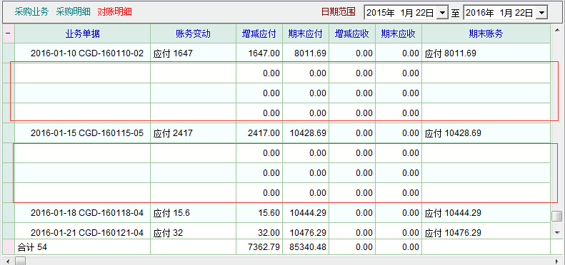 供应商卡片对账单出现许多空白记录,建议消除掉这些多余的空白记录。