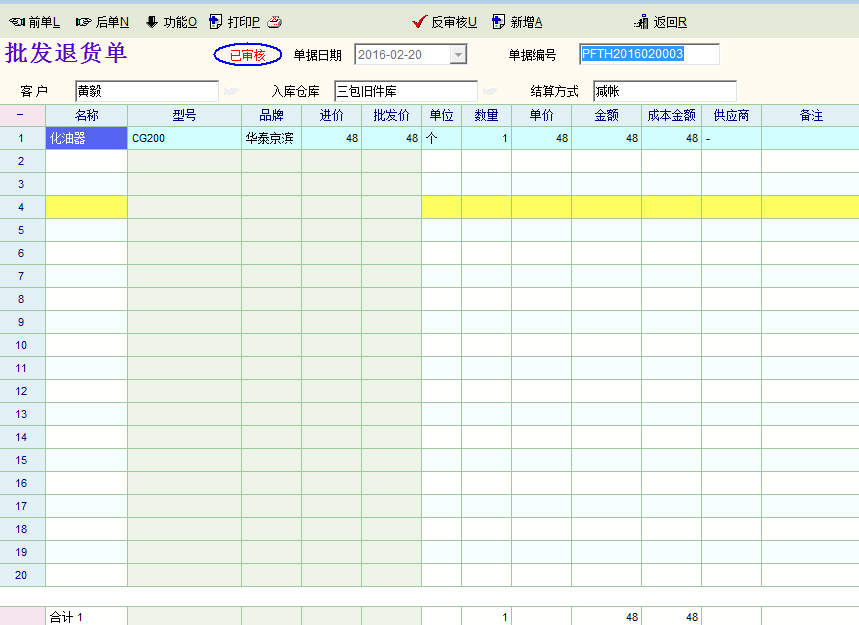 我自定义了一张批发退货单,审核后影响往来账(减少),可进入收款单时,收款单的金额为退货单的2倍,请问是怎么回事