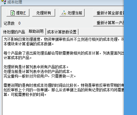 1.使用本软件的时会遇到成本重新计算的问题,特别是不同批次的进货成本单位可能会不一样,选择不同的发出存货计价方法会对期末存货金额会产生影响,为了更好地查阅进货单价,需要进行“成本处理”。在做了成本处理后,需要退出系统重新进入,成本数据才能生效,没有做到实时,能不能做到成本处理后,成本数据立即生效,省去退出系统重新进入这个步骤。
