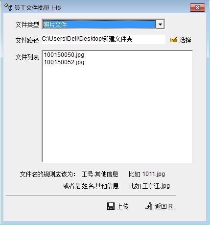 目前批量上传或导出员工文件功能,支持的格式是“工号.其他信息”或“姓名.其他信息”,考虑员工文件存储的规则,建议扩展文件格式,用“.”分格,如: