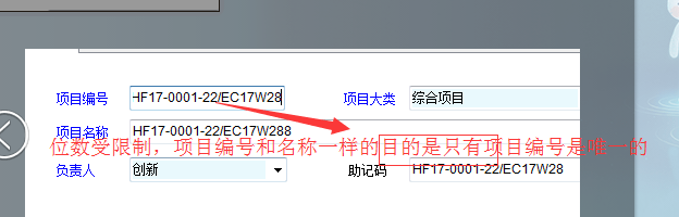 2.项目定义里,项目编号位数受限制,多4个就可以了,项目编号和名称一样的目的是为了防止重复输入。