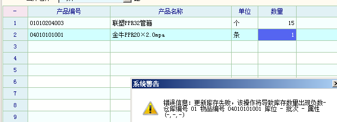 错误信息:更新库存失败,该操作导致库存数量出现负数