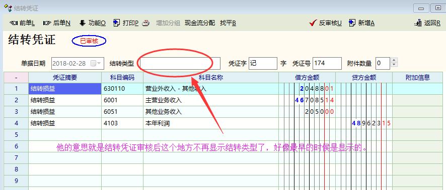 结转凭证审核后不再显示结转类型