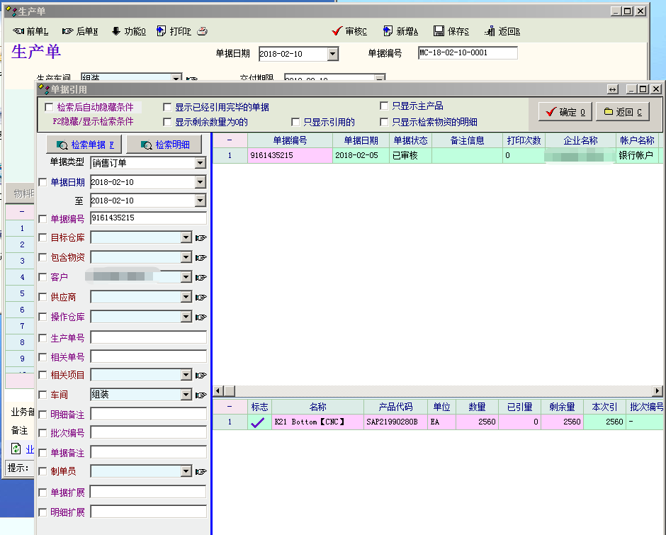 单据要审核后才能够被下级单据引用。生产单引用销售订单,只保存不审核不可能被下级单据(领料单)所引用,自然再下级单据也不可能被更下级单据所引用。 |