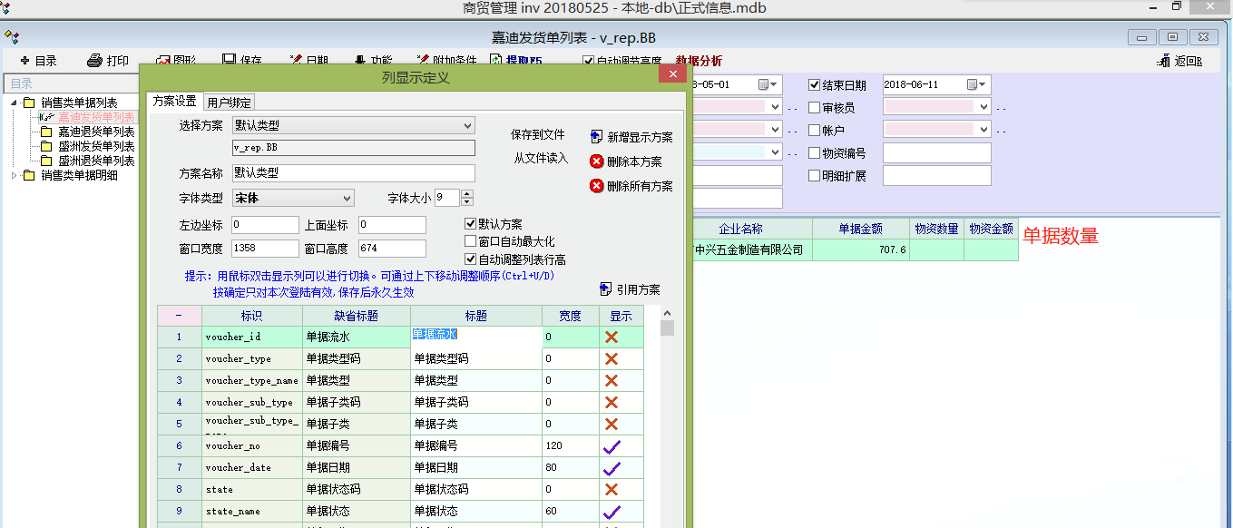 1.每一个单据,都有一个单据类型的列表,列表报表不是明细表,只能展示一行,有单据金额,但是这个我取到的是含税金额,但是没有单据的合计数量。能否增加一个显示字段,加上单据数量字段展示。